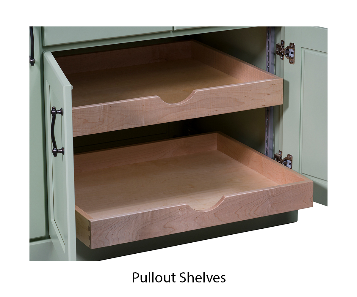• Two pullout shelves behind the left door