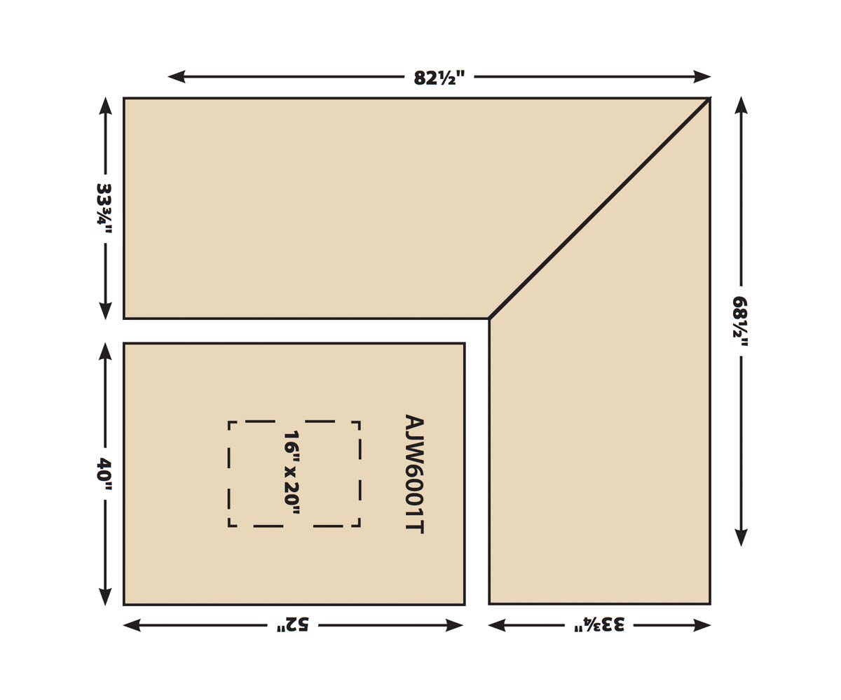 Left Side Bench: 82″W x 33″D x 36″H
