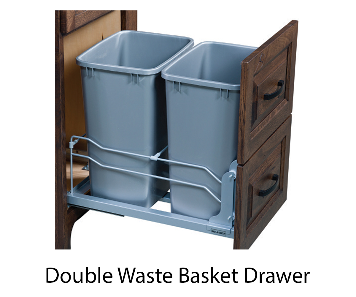 • Double trash can pull out behind the door